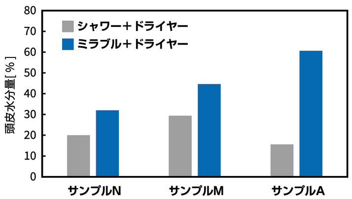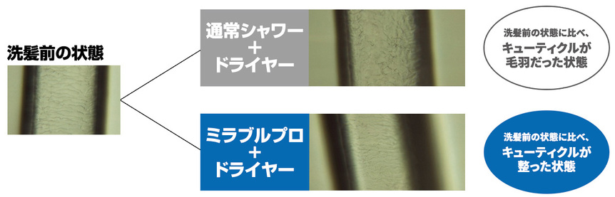 シャワーとミラブルプロとの洗髪乾燥を比較